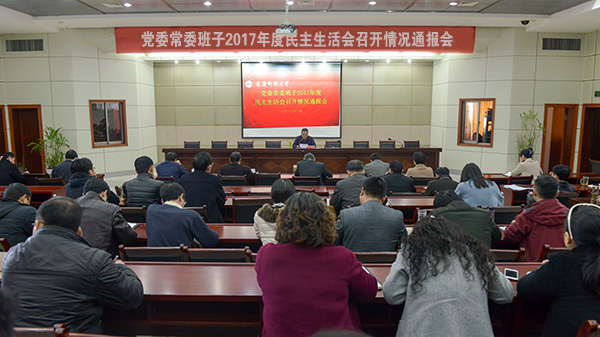 3月12日下午,永利官网召开2017年度校党委常委班子民主生活会情况通报会。全体校领导,全体党委委员、纪委委员,全校副处级以上干部参加会议。