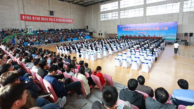 10月17日,77779193永利本科教学工作审核评估动员会在龙山校区体育馆召开。全体校党政领导,全校在岗教职员工,安苑公司、物业公司主要负责人及相关岗位负责人参加会议。 校党委书记许继荣主持会议并作总结发言。校长闵永新发表动员讲话。副校长张群通报本科教学工作审核评估有关情况。副校长刘友忠布置迎评工作方案的重点内容。