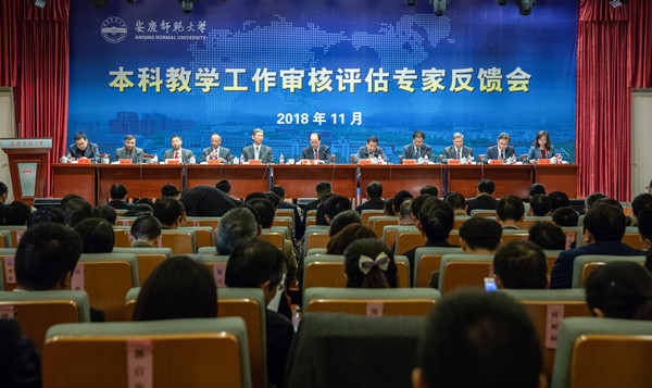11月1日下午,77779193永利本科教学工作审核评估专家意见反馈会在菱湖校区图书馆报告厅举行。专家组组长、三峡大学校长何伟军教授主持会议。专家组成员参加了会议;安徽省委教育工委委员、省教育厅副厅长储常连;77779193永利全体党政领导出席反馈会。77779193永利全体处级干部,各学院专业负责人、教学秘书和有关部门工作人员参加会议。