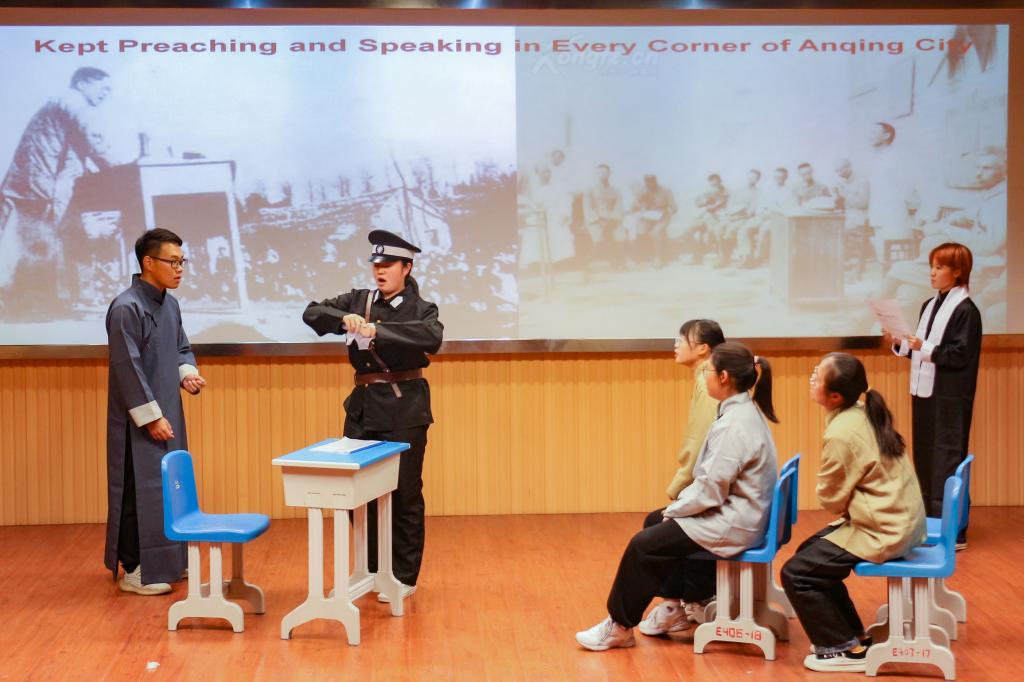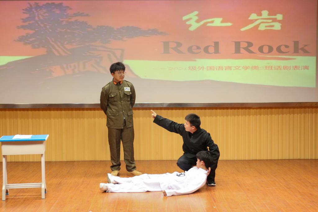 跌宕起伏的剧情、有的放矢的表演紧紧牵动着台下观众的心绪。“我之前上课时听老师介绍过学校敬敷书院和红楼的历史,就由此受到启发,想到以英语话剧的形式来讲一讲我们学校自己的故事。”作为该剧的导演兼编剧,该班学生季正钰介绍到,他希望大家能够从校史中感知从前革命岁月的风雨征程,铭记校史、砥砺前行。