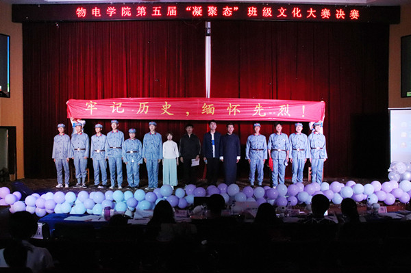 “青春校园,活力无限。”4月24日晚,物理与电气工程学院第五届“凝聚态”班级文化大赛决赛在图书馆东报告厅举行。科研处处长陈二祥、院党委秘书以及部分辅导员和教师代表参加此次活动。