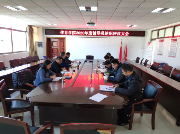 1月14日,体育学院召开2020年度辅导员述职评议大会,体育学院领导班子作为测评领导小组成员参加会议,会议由体育学院党委副书记高栋梁主持。