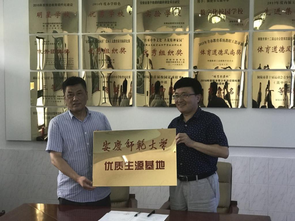 6月23日至25日,外国语学院党政负责人分头带队赴铜陵市、滁州市开展2018年本科招生宣传工作。两个宣传组先后走访了铜陵一中、铜陵实验中学、来安中学、滁州中学、滁州实验中学、全椒中学、全椒慈济中学等学校,并在滁州中学、来安中学、铜陵实验中学三所中学举行了永利官网“优质生源基地”的授牌和签字仪式。