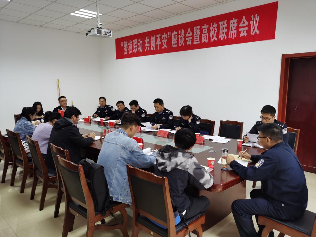 为进一步推动平安校园建设,做好新形势下校园安全稳定工作。4月25日下午,学校安全管理处邀请安庆市公安局宜秀分局来校开展“警校联动 共创平安”座谈会。学校安全管理处主要负责人,教师代表、学生代表;宜秀分局分管负责人,分局国保、刑侦、治安、派出所等部门相关工作人员参加了座谈。