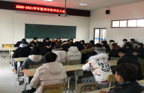 1月7日中午,篮球学院在体育馆多媒体教室召开2020至2021学年度全体学生会议,篮球学院专项教师、辅导员、2019级和2020级篮球对口班全体同学参加会议。会议由副院长林秋菊主持。