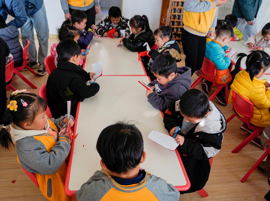 剪纸、手工、黏土、书法,小朋友们学得不亦乐乎,小小的教室热闹非凡。12月1日,美术学院“青马班”学员代表和“弘美”志愿服务队成员共19名志愿者共同前往皖红新城名都幼儿园,为小朋友们带来了一堂有趣的实践课。