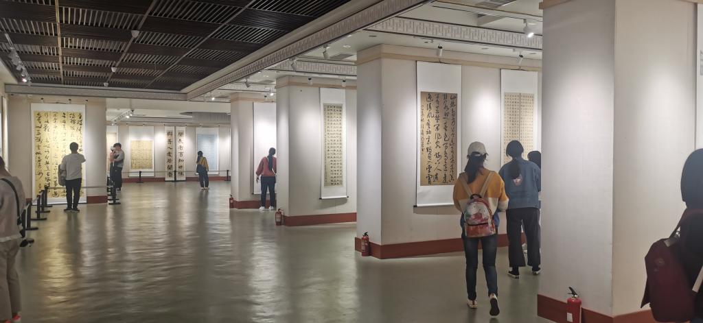 在邓石如碑馆中,学员们在陈列室驻足参观,观看左右两壁碑刻,感受安庆文人深厚的书法底蕴和书法成就。安庆市美术馆恰逢安庆市首届中青年书法篆刻展,展出的数十幅作品汲取先贤书法精髓,“篆、隶、楷、草、行”五体皆备,让学员们体会到书法艺术的韵趣。