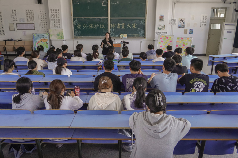 “爱护地球环境,保护海洋生态,珍惜土地资源,为建设美丽中国贡献力量。”一幅顿挫有力,法度严谨的楷书作品在活动现场格外引人注目。作品创作者、小学教育专业2021级(2)班的学生郑倩文表示,她想用自己的作品带动同学们积极参与到环保活动中去,携手前行,共同关爱地球家园。“环保事业不仅仅是国家的大事,我们青年人也应该从小事做起,爱护环境。”