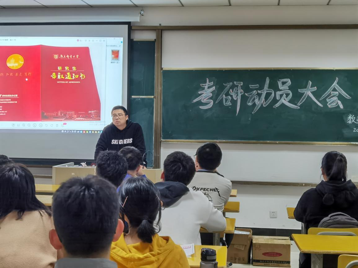 10月27日晚,学院在I楼503教室召开了考研动员大会。院党委副书记何骏、团委负责人汪健、辅导员代表秦晶晶,以及学院2021届准考研的同学们参加了此次大会。