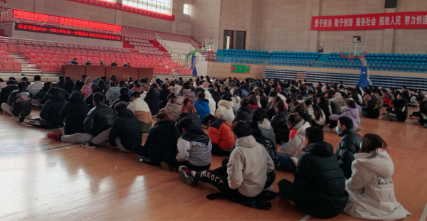 1月7日,体育学院在体育馆篮球馆召开2020至2021学年第一学期期末考试考风考纪教育大会。体育学院副院长林秋菊、党委副书记高栋梁,教学办、辅导员和专业教师代表出席会议,体育学院2020级全体新生参加会议。