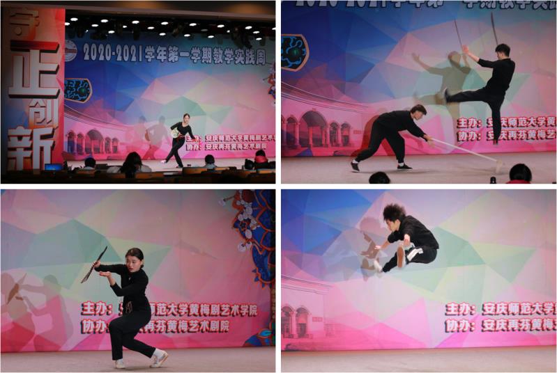 剧目观摩集中安排在11月27日至12月10日,期间该院学生前往安庆黄梅戏艺术中心观摩再芬黄梅青年团7部大戏、13场演出,该院所有师生及学校相关专业师生的观演门票全部由再芬黄梅提供,既丰富了学生观摩舞台演出的实践经验,又发挥了该院优秀毕业生的示范引领作用,社会反响热烈。迎新戏曲晚会宣布了本次实践教学周基本功比赛获奖学生名单。通过剧目教学汇报演出,既通过舞台检验了该院本科教学质量及人才培养成效,也遴选了一批优秀剧目参加年底高雅艺术进校园黄梅戏专场演出。本次教学实践周系列活动,以演促教,以赛促学,在教学相长中进一步强化了实践育人,让学生真正“学”起来,“活”起来。 (撰稿:邵晨阳 胡庆玉 摄影:汪传江 冯宗钦 审核:金根山 储著炎)