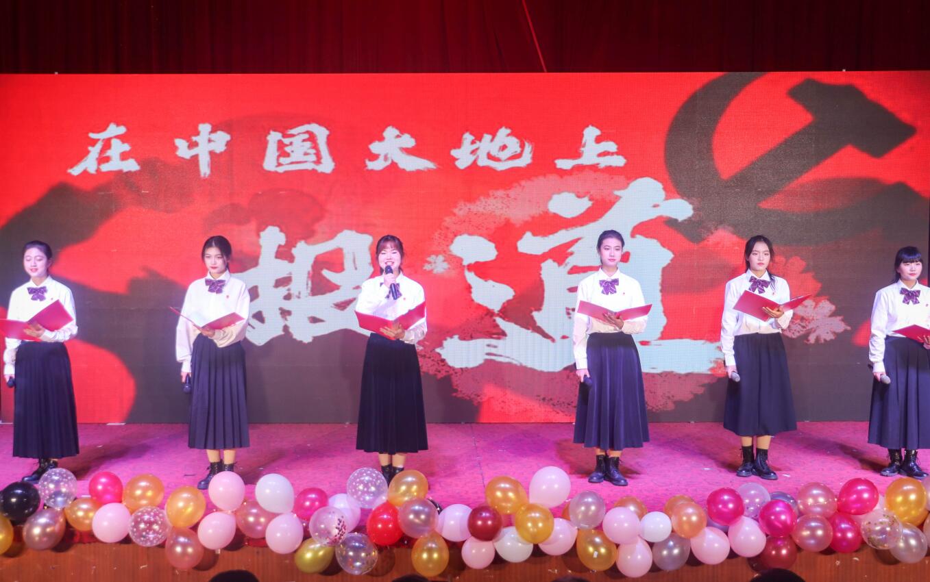 “我们是中国传媒学子,在中国大地上向您报道!”学院主持队身穿白衫黑裙,用视听结合的方式带来演讲《在中国大地上报道》,引领现场观众回忆中华人民共和国的历史性变革和成就,层层递进,慷慨有力。“听着他们的朗诵,中国共产党成立100周年的百年党史仿佛历历在目。” 新闻传播学类专业2021级(6)班的杨悦表示这是她印象最深刻的节目,朗诵者们字字铿锵的朗诵激发了她的爱国责任与爱党情怀。