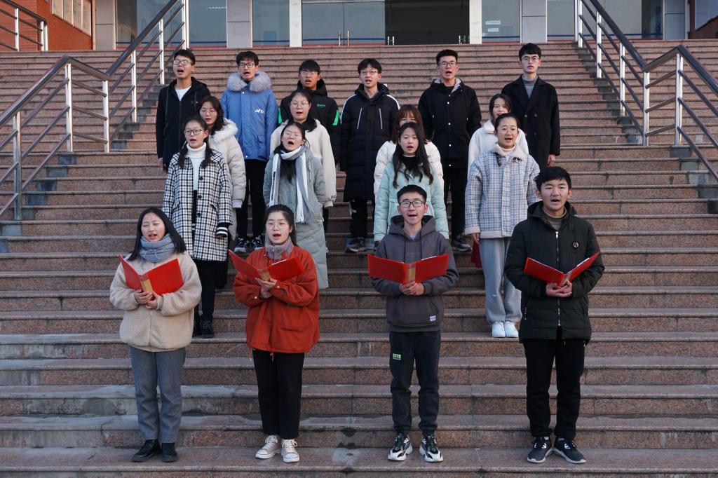 晨诵以“两个黄鹂鸣翠柳,一行白鹭上青天。”为开篇内容。随后,“莫愁前路无知己,天下谁人不识君”和“山一程,水一程,身向榆关那畔行”等耳熟能详的诗句也被学生大声地朗读出来,虽然气温较低,但是学生们还是很“卖力”地进行朗诵。