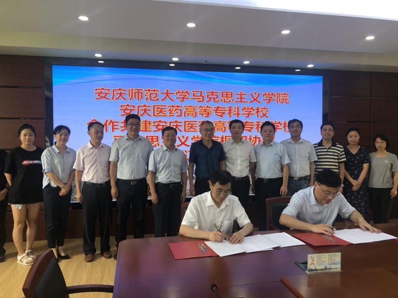 6月28日,马克思主义学院与安庆医药高等专科学校合作共建马克思主义学院框架协议签订,马克思主义学院院长罗本琦、党总支书记金文斌、副院长张俊生、副书记闪茜菁,安庆医药高等专科学校领导杨金奎、李卫平、朱庆丰,以及该校思政部全体教师参加。