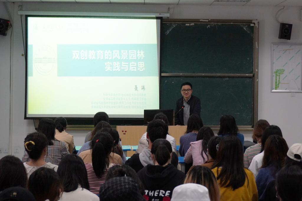 下午。两校教师在G楼101室分别作了精彩的学术报告。聂玮做了题为“双创教育的风景园林实践与启思”的报告,聂玮分享了安徽建筑大学大学生创新育人理念、创新育人模式以及取得的成果。