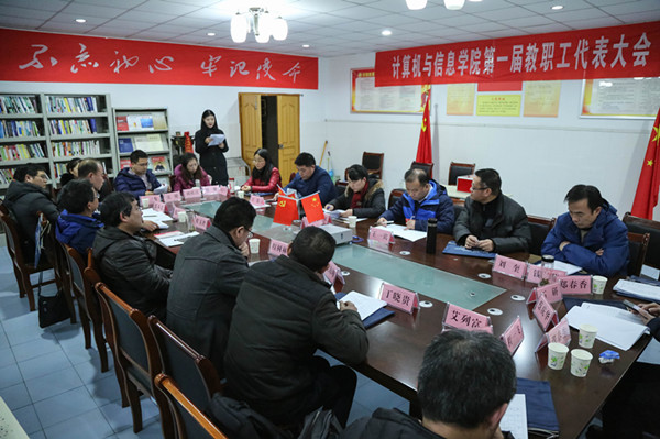 12月18日,计算机与信息学院第一届教职工代表大会在周转房二楼会议室举行。学院正式代表、特邀代表、列席代表出席了会议,开幕式由学院院长王一宾主持。