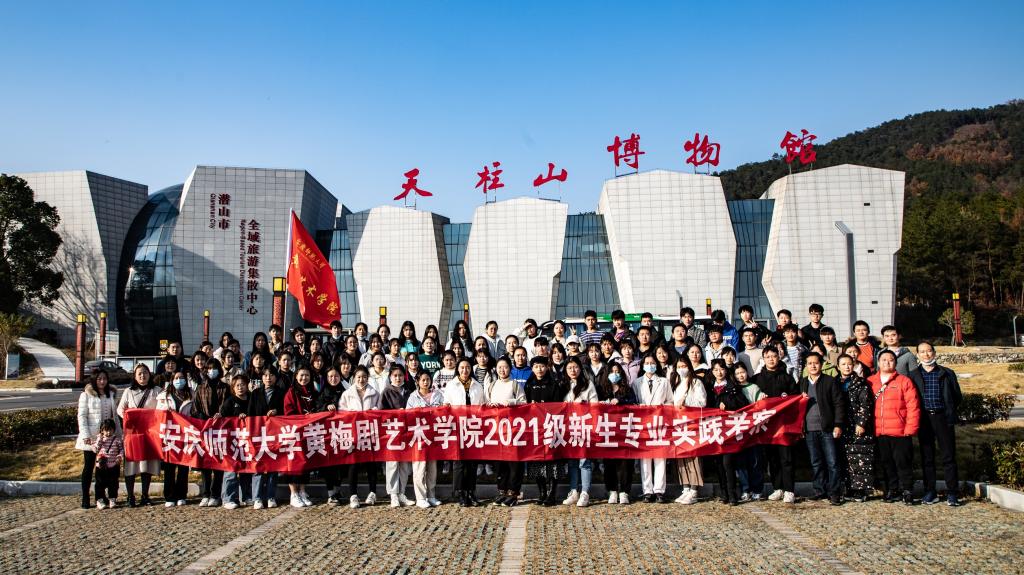 文化铸魂,化知为行。为切实加强实践育人工作,12月4日,黄梅剧艺术学院2021级黄梅戏表演、戏剧学(黄梅戏编导)本科及艺术硕士(戏曲)专业学位研究生新生在专业教师的带领下,先后赴怀宁孔雀东南飞文化园,潜山天龙关《天仙配》影视拍摄基地、天柱山博物馆和潜山博物馆开展专业实践考察活动。