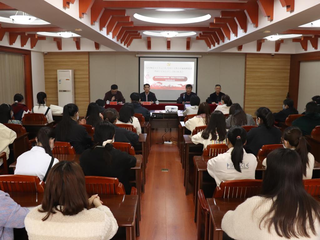 张红飞在讲话中指出,爱国主义教育基地是激发爱国热情、凝聚人民力量、培育民族精神的重要场所,是中国共产党人的精神殿堂、中国人民的精神家园、中华民族的精神高地。在全党喜迎建党100周年、掀起深入开展党史学习教育热潮之际,师生党员齐聚一堂,与安庆市博物馆共建爱国主义教育基地,对团学系统党史学习教育进行再动员、再部署、再推进具有重大意义。人文学院在长期的办学实践中,始终坚持立德树人,注重挖掘大别山地区红色文化资源,开展青年大学生理想信念教育,形成了“文化育人”的办学特色。学院与市博物馆共建爱国主义教育基地,是贯彻落实《新时代爱国主义教育实施纲要》的重要举措,是开展党史学习教育的生动实践。他强调,要牢牢把握党史学习教育的目标任务,做到“四个聚焦”:一要聚焦“学党史”,永远铭记光辉历程、传承红色基因。二要聚焦“悟思想”,坚持不懈用党的创新理论最新成果武装头脑。三要聚焦“办实事”,切实把全心全意为人民服务的根本宗旨落到实处。四要聚焦“开新局”,确保学习教育实效见到新气象。