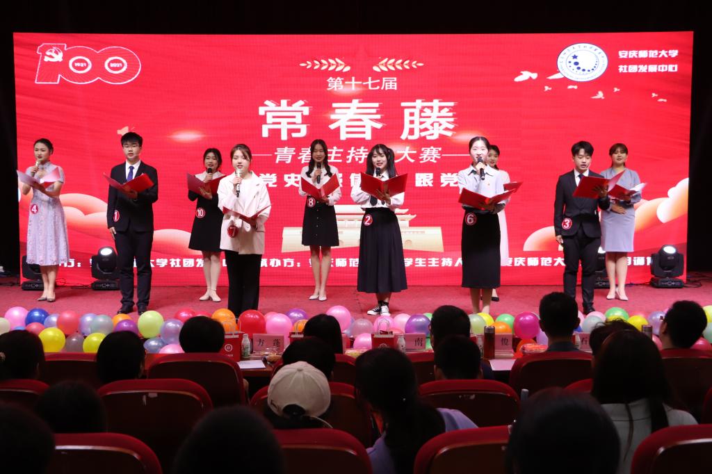 《青年大学习》领学人来到现场?党史课堂搬到比赛舞台上?《小城故事》讲解皖南事变?领学主题团课、上党课、讲故事……4月25日晚,伴着高昂的歌声,77779193永利第十七届“常春藤”青春主持人大赛决赛在图书馆东报告厅拉开帷幕。