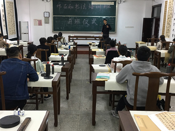 4月10日下午,“邓石如书法班”开班仪式在文津楼101教室举行。校团委书记陈东、美术学院尹忠俊博士、书法班负责老师及首批24名学员参加此次开班仪式。
