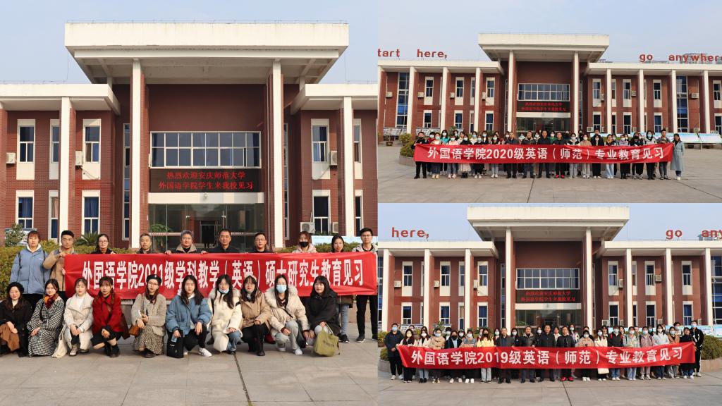 12月8日,外国语学院组织2019级、2020级英语(师范)专业学生以及2021级学科教学(英语)专业研究生共计445人赴安庆市外国语学校开展教育见习活动。