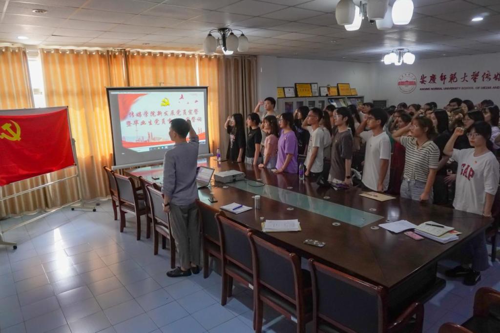 “我志愿加入中国共产党,拥护党的纲领……”。6月29日,传媒学院举行新发展党员入党宣誓暨毕业生党员重温入党誓词大会。新闻学学生党支部负责老师领誓并主持仪式。