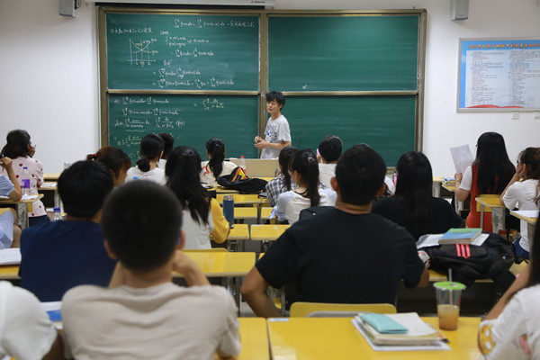 值得一提的是,晏为金不仅爱讲高等代数题,也会穿插给同学们普及数学史和一些趣味小故事。“所以我们才觉得学长讲题非常有意思,不仅题目讲得细致,说话也非常幽默风趣。”数学与应用数学专业2017(1)班的江静说。