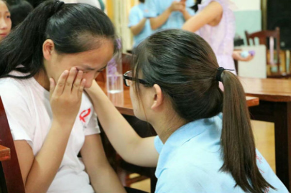 “胡阳是个很棒的男孩哦,最近表现得特别好……”志愿者们常常主动找胡阳谈心,安慰并鼓励他。后来在素质拓展活动中,胡阳不断自信起来,在最后的文艺汇演中把小主持人的角色也演绎得非常好。在大家一起吃饭的时候,胡阳虽然不说话,但总会默默地帮志愿者们盛汤。