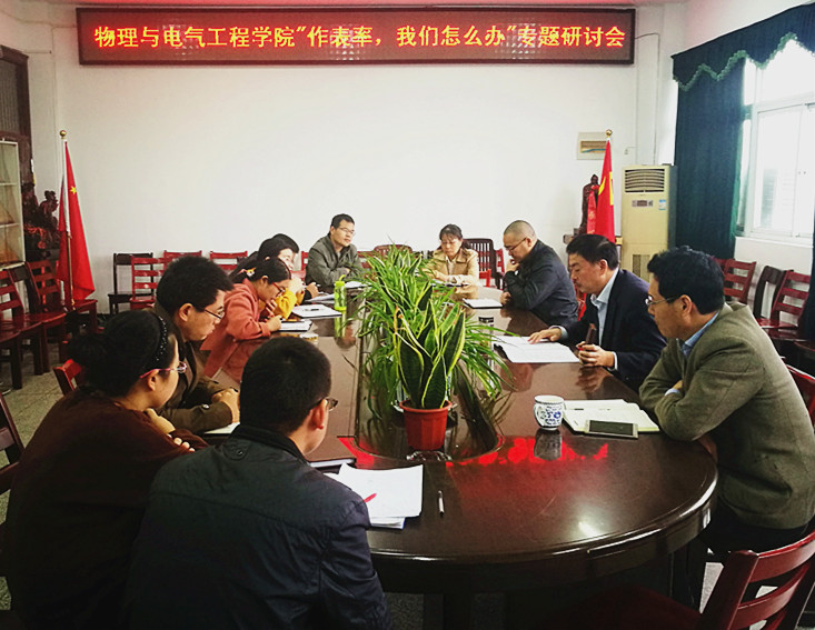 10月16日上午,物理与电气工程学院党总支在学院会议室召开中心组扩大学习会议,围绕“作表率,我们怎么办”开展专题研讨。党总支书记金根山主持会议,学院党总支委员、支部书记参加了研讨会。