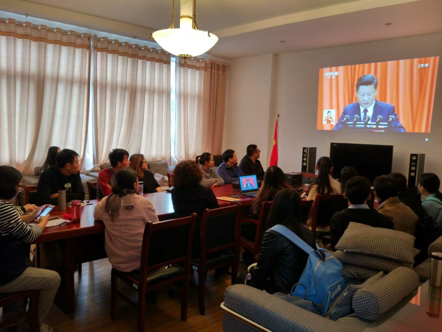 10月18日上午,音乐黄梅剧艺术学院党总支成员、教师党员、学生党员以及近期发展对象集中收看了党的十九次全国代表大会开幕会盛况,认真聆听了习近平总书记代表第十八届中央委员会在大会上作的报告。