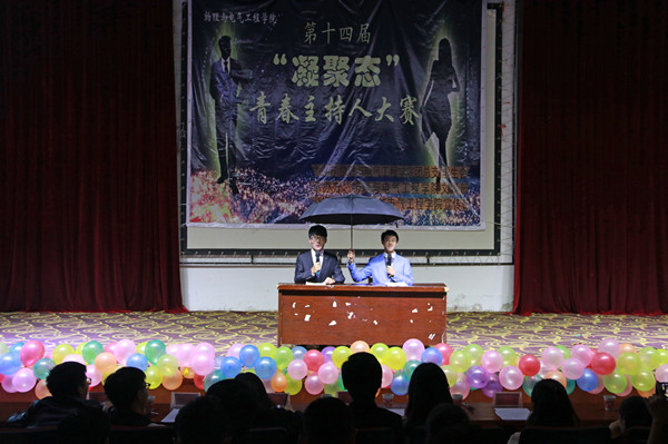 11位参赛选手在简单自我介绍后,开始了本次大赛的核心环节——模拟主持。新闻类节目《新闻联播》、资讯类节目《天气预报》、儿童类节目《魔法乐园》皆是观众们耳熟能详的节目,选手们精致的表演、细腻的表达、创新的改动,引起观众们的阵阵喝彩。“节目在传统的基础上,进行了适当的改动,让人眼前一亮。”自动化专业2016(1)班李志鹏说。