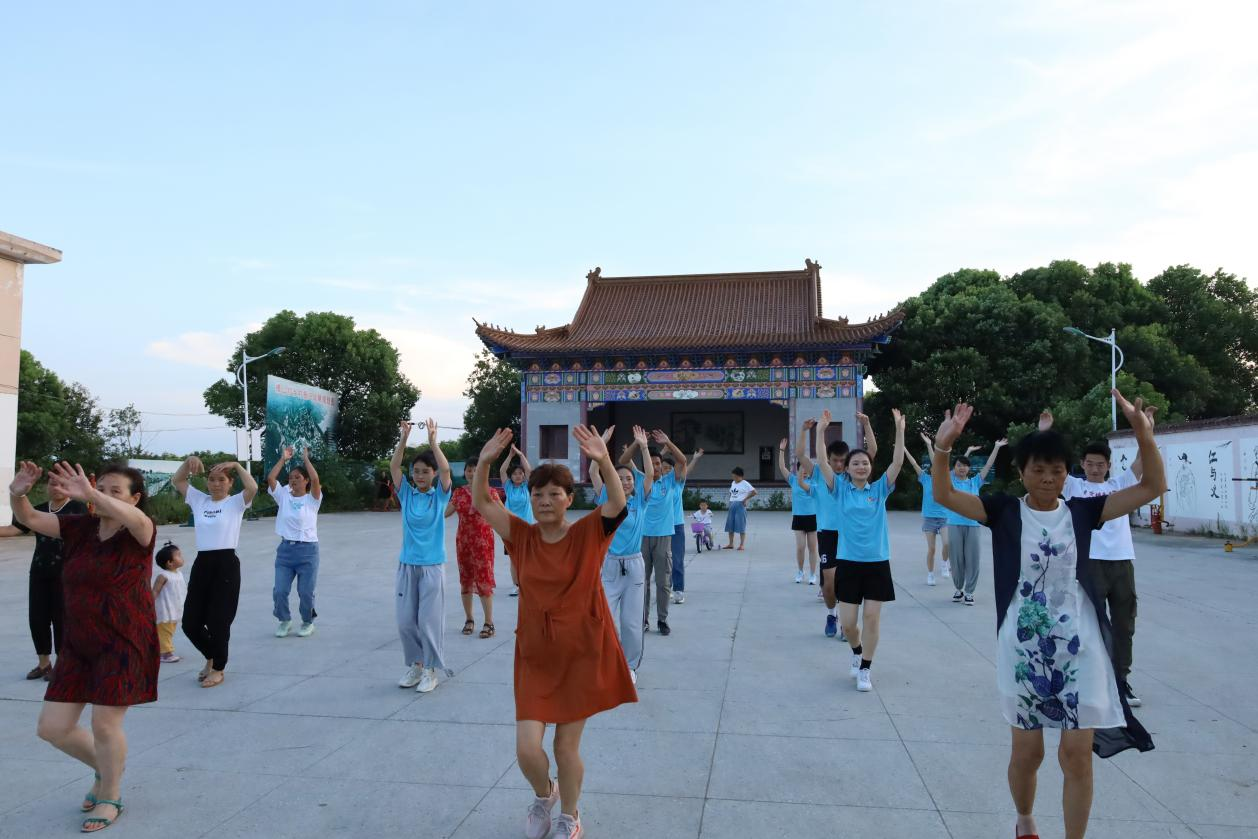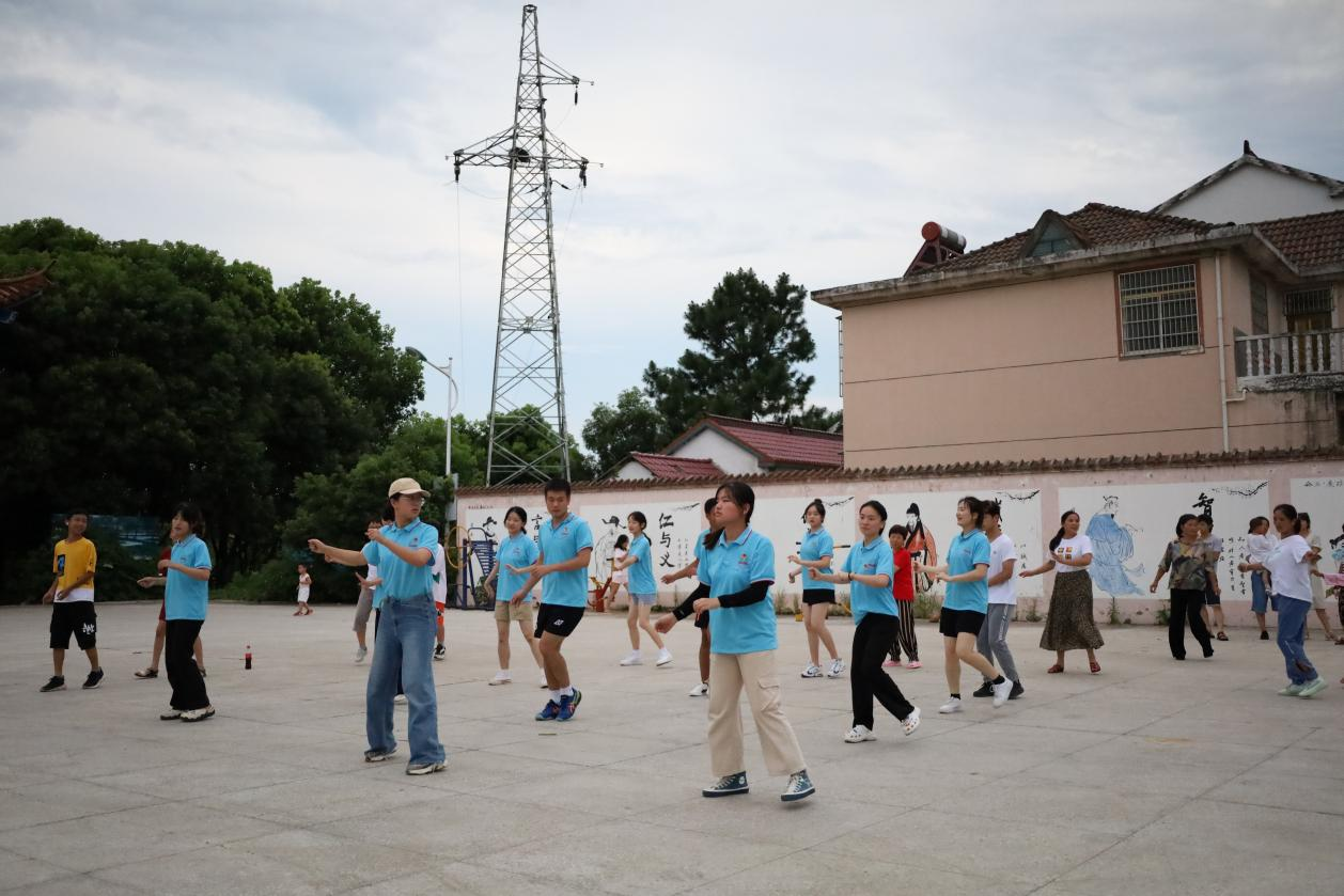 “广场舞不仅能展现我们的专业特色,更重要的是它简单、易学,能够快速地让我们融入村子里,也能带动村民们和我们一起锻炼身体。”陶素霞向成员们分享了自己的想法,获得了大家的一致同意,于是团队成员当即便开始准备,拿上了音响等设备,结束支教活动后就立刻聚集到村中广场上跳舞。