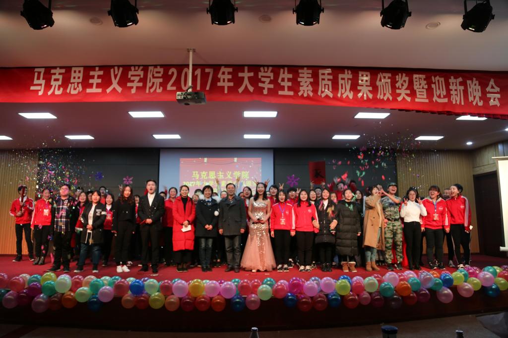 12月26日晚,马克思主义学院2017年大学生素质成果颁奖暨迎新晚会拉开帷幕。马克思主义学院党总支书记余精华、党政办公室主任、团总支学生会办公室主任和学院全体学生观看了此次晚会。