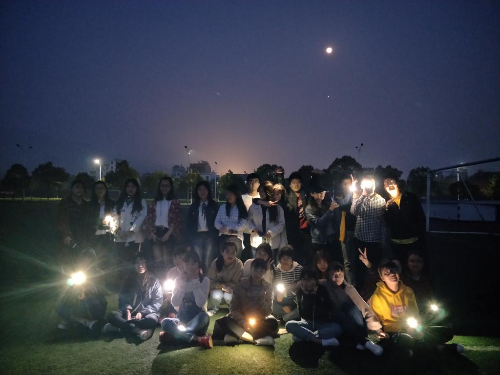 第二个阶段是即兴表演,同学们围成一个大圈,班委带头给大家跳了一支拉丁舞,动感旋律、美妙的舞姿吸引同学们关注的同时,更激发起大家参与的积极性。随后,多名同学竞相展示了自己的才艺,有的同学引吭高歌深情演绎,有的同学激情澎湃诵读红色经典,还有的妙语连珠现场脱口秀……整个操场笑语连连、热闹非凡。