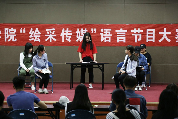 4月17日晚,大学生活动中心欢笑不断,传媒学院在这里举办第六届“绘采传媒”语言节目大赛。经过激烈的角逐,广播电视学专业2017(2)班的小品《我是路人甲乙丙》夺得冠军。