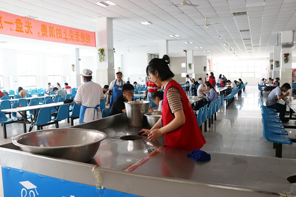 “阿姨,我来帮您,您休息一下吧!”化学工程与工艺专业2017级(3)班的关金凤一把接过了食堂阿姨手中的清洁布和收纳桶,细致地将餐桌上残余的食物清理干净。“食堂阿姨们工作期间都是站着的,特别辛苦。”关金凤说,食堂阿姨平时服务学生就像妈妈一样细心、热心,她很想做些事来回报她们。