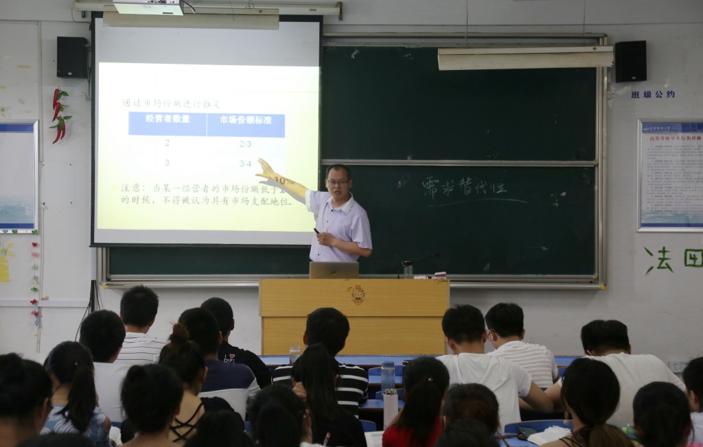 5月16日下午,法学院开展公开课教学。本次公开课由知识产权教研室主任崔汪卫博士讲授《市场竞争法》,分管教学副院长朱留虎及全体教师参加了听课。