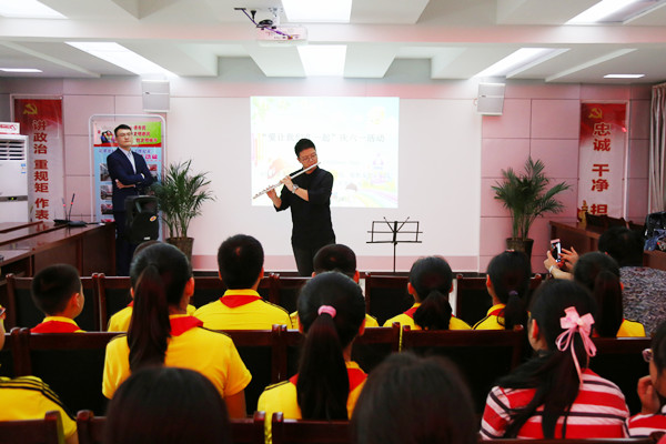 孩子们也精心准备了节目。佩戴着红领巾的小学生们整齐地站成两排,轻轻踮起脚尖,摇摆着手臂,伴随着动听的音乐,他们的“曳步舞”开始了。一个个摇头晃脑,有模有样,赢得大家的阵阵掌声。