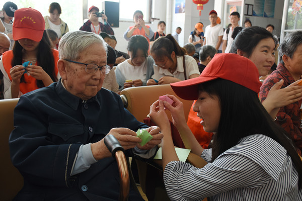 “我教爷爷折一颗‘爱心’的时候,爷爷很感兴趣地跟着我一步一步折,等到完成作品时我们俩都很开心。”陈凡表示,作为一名新时代的新青年,参加这样的志愿活动,可以将所学专业知识用于实践。“和老人们一起聊聊天、做游戏,看见他们笑,就觉得活动就很有意义,也希望能带动更多同学关注这些老人,参与到实践中来。”