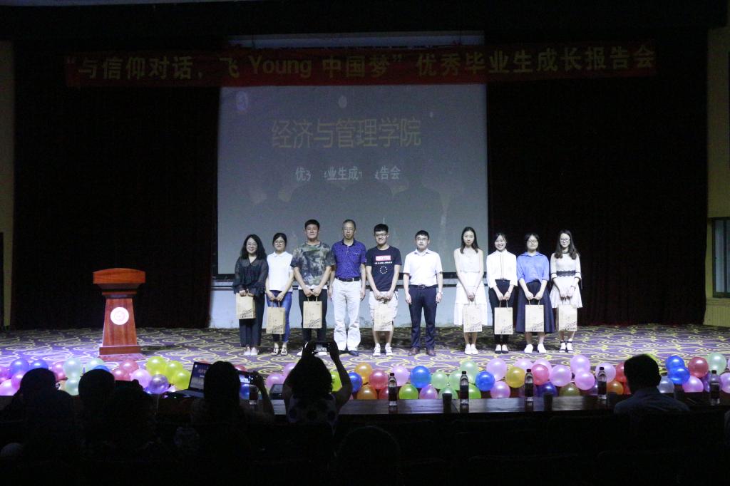 鸿鹄有志去万里,历尽千帆,归来仍少年。6月25日晚,经济与管理学院在图书馆东厅举办 “与信仰对话,飞Young中国梦”优秀毕业生成长报告会,学院党委书记李亦亮、副院长黄先军、党政办主任、团总支负责人及辅导员、学院非毕业班400多位同学聆听了报告。