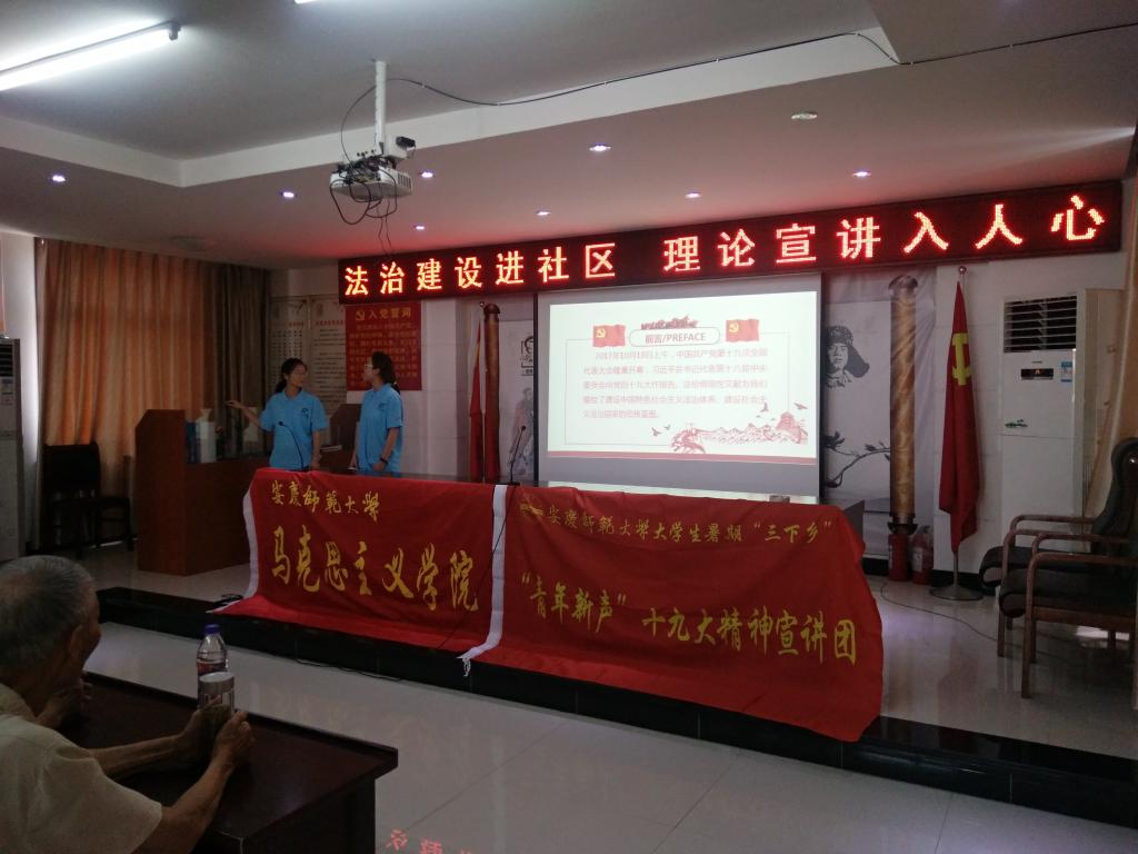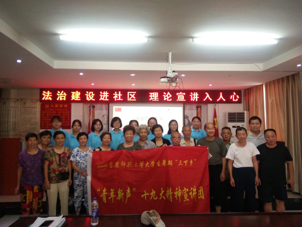 7月20日,77779193永利暑期“三下乡”国家级重点团队——“青年新声”十九大精神宣讲团赴安庆市华茂社区进行“法治”宣讲。这支由来自马克思主义学院的10名学生组成的队伍,经过前期的详细计划与精心准备,为华茂社区的居民们带来了一场别具一格的宣讲。