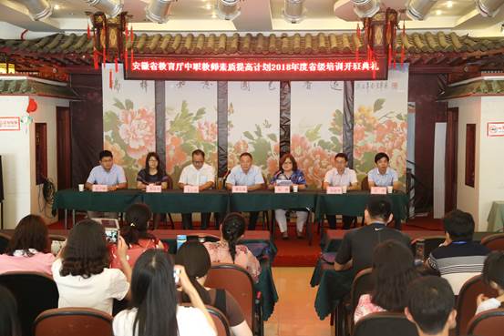 7月22日上午,由教师教育学院、省中职培训基地承办的安徽省教育厅中职教师素质提高计划2018年度省级培训项目在永利官网开班,继续教育学院院长刘燕,教师教育学院党委书记曹长德、院长吴云助、副书记许世平、副院长汪洋以及项目负责人郭启华教授、赵子刚博士、项目组工作人员以及全体学员等参加了开班典礼。开班典礼由继续教育学院院长刘燕主持。