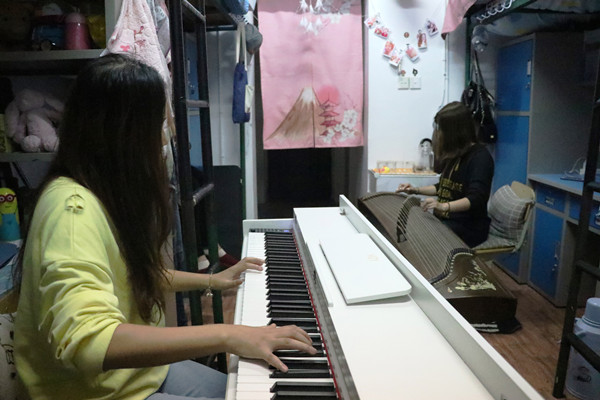 “这是我们最值得回味的一次演奏,以往的很多表演都是在舞台上完成的,会有点紧张,在寝室表演的气氛就比较轻松。”汪珺文说,“电影《闪光少女》,讲述的是中西方乐器的碰撞,我们寝室将银屏里的情节‘接地气’地搬到了寝室。”