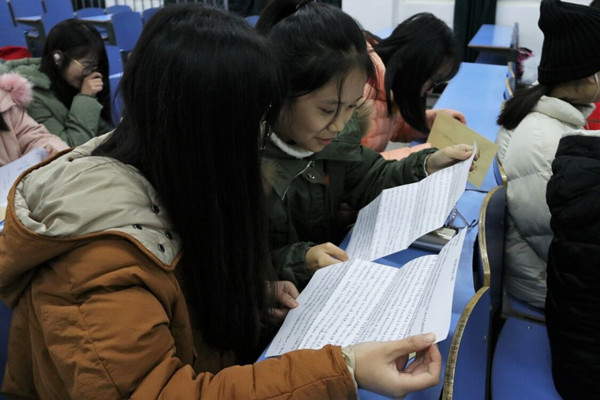 12月5日晚,十余名学生走进了2018级传媒学院新生们的自习室,拿着由38名入党积极分子亲手写下的告诫信送给学弟学妹,以亲身经历提醒学弟学妹“如何学习”、“做自己想做的”、“不要低估自己的能力”……