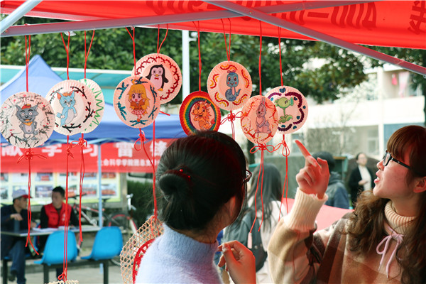 用超轻粘土做的各种卡通人物,蛋糕托盘做的装饰挂件……五颜六色的小玩意吸引了不少同学前来观看。“早就听说教师教育学院的女生真的是心灵手巧,今天总算见识到了。”电子信息科学与技术专业2018(2)班的鲍岩说,“这些小玩意十分可爱,还有动漫里面的角色,我很喜欢。”