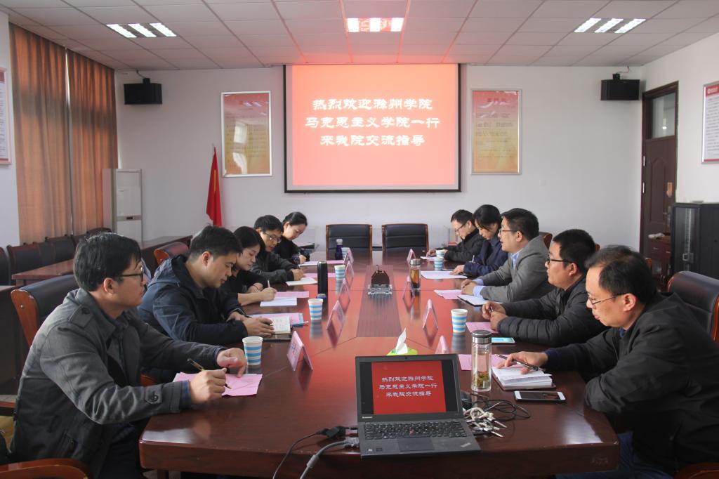11月21日下午,滁州学院马克思主义学院党总支副书记、副院长张静一行五人来我院考察交流,副院长张俊生、党总支副书记闪茜菁和相关教研室主任、老师参加了交流活动。