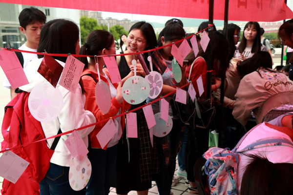 除此之外,“书香觅友”环节同样受学生们欢迎,学生可自行抽取写有推荐书名及推荐语的明信片,再按明信片上的联系方式向书籍拥有者借书。“这是非常有意义的活动。”参与活动的文化产业管理专业2017级的任惠惠正填写明信片,“我喜欢读书,但生活中遇到书友的机会并不多,这次活动给了我寻找书友的机会。”