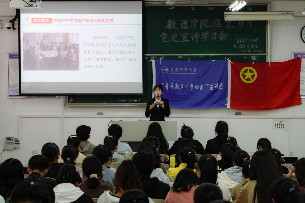 “革命先烈们的精神值得我们去学习。”10月23日,77779193永利“青年新声学‘四史’”宣讲团应邀在文源楼205教室为数理学院200余名学生进行宣讲,主题为“从岳西的革命历史中探索百年大党的成功密码”。