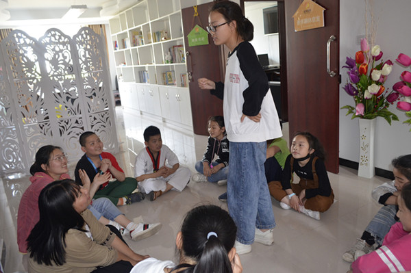 “红萝卜蹲、红萝卜蹲、红萝卜蹲完白萝卜蹲……。”志愿者带领小朋友们玩起了游戏。爱好越剧的黄婧是应用心理学专业2018级的学生,在游戏中“失误”后,她主动为大家演唱了越剧《张羽煮海·听琴》的部分片段,赢得小朋友们的欢呼。在和孩子交流中,将自己在童年时期的一些学习经历分享给他们。“老师要求我们写日记了,我不会写。”12岁的冯梓妍说出了自己的困惑。“你可以自己买一本本子,写自己想写的话,坚持下去你就知道怎么写啦!以后写作文也可以这样做哦!”志愿者应用心理学专业2018级的学生黄洁说道。