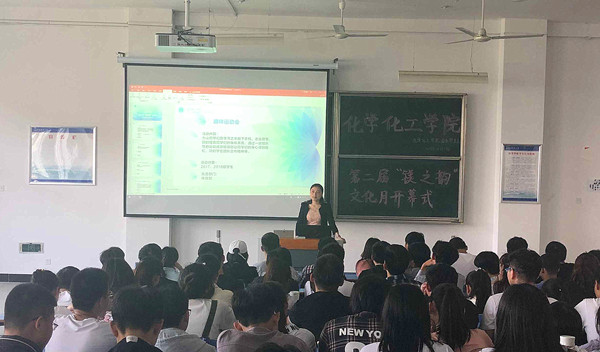 为丰富学生的校园文化生活,展现学生的青春风采,培养学生认识美、爱好美和创造美的能力,打造文明和谐的校园文化,4月19日,化学化工学院第二届“镁之韵”文化月开幕式在D208举行。学院团委书记叶丹及全体学生代表参加此次开幕式。